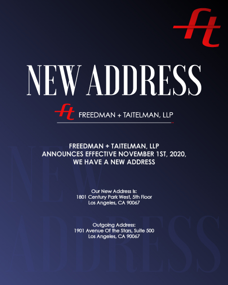 Freedman + Taitelman, LLP announces effective November 1st, 2020, we have a new address
